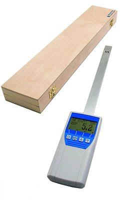 El higrómetro de penetración sirve para medir la temperatura y la humedad relativa de pilas de papel o cartón, sea en el almacén o en el equipamiento de una fábrica de papel. Para medir la humedad y la temperatura de las pilas de papel con el higrómetro deberá introducir el sensor en la pila de papel y a continuación leer los valores correspondientes en la pantalla. Además, este medidor le permite memorizar hasta 10.000 valores de medición y analizarlos en un PC a través del software opcional. El higrómetro se envía opcionalmente con los estándares de calibración para su el laboratorio. El aparato es ideal para determinar las correlaciones entre la humedad absoluta en el tambor de la máquina de papel y la humedad relativa del papel apilado o almacenado.