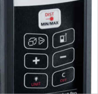- Suma y resta de longitudes. - El adición de superficie permite la determinación de superficie de pared en habitaciones. - Con cálculo versátil y funciones de la memoria. - Precisión de medición hasta 50 m: ± 2 mm *. - Gama de medición interiores: de 0,05 m a 50 m. - 3 puntos de medición seleccionables de referencia: delante, atras y con pin. - Min / Max función para determinar diagonales, verticales, horizontales y distancia mínima. - Modo referencia para una fácil transferencia de longitudes. - Pantalla LCD de 3 líneas con iluminación. - Con pin trasero para medición en esquinas DATOS TÉCNICOS