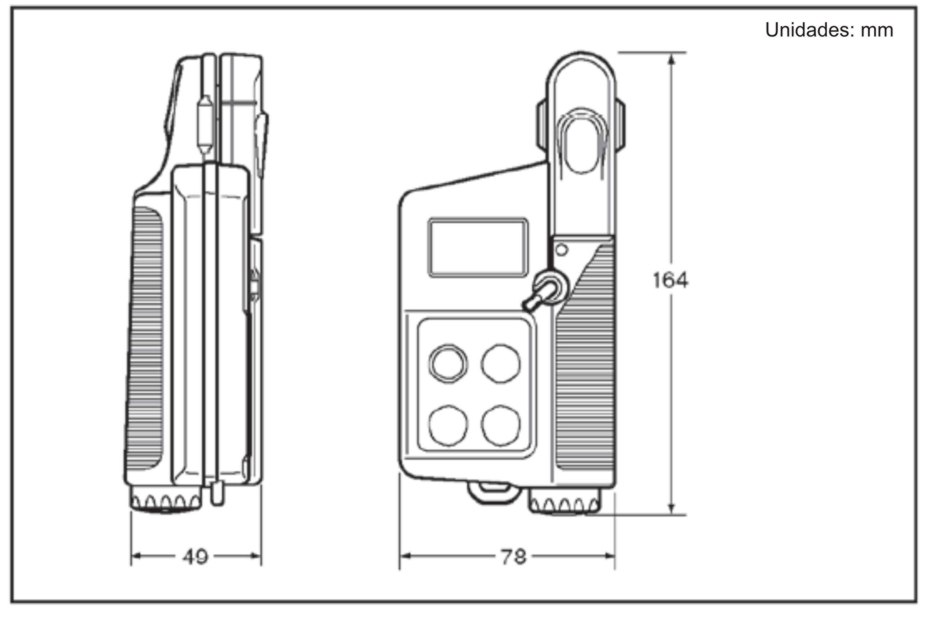Pantalla | Panel LCD, muestra los valores de 4 digitos,( los valores muestran el primer lugar decimal de medida y 2 numeros de digitos de medidas, Gráfico de tendencia de los valores en la memoria también puede ser mostrado | |||||||||||||||||||||||||||