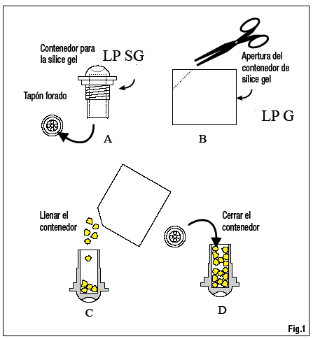 | 5 Mantenimiento: Para garantizar una alta precisión de la medición, es necesario que la cúpula externa se mantenga siempre limpia, por lo que cuanto mayor es la frecuencia de limpie-za, mejor será la precisión de la medición. La limpieza puede hacerse con papeles normales para la limpieza de lentes y con agua. Si no fuese suficiente, usar alcohol etílico puro. Después de la limpieza con alcohol, es necesario limpiar la cúpula otra vez sólo con agua. Debido a los altos cambios de temperatura entre el día y la noche, es posible que dentro del piranómetro se forme condensación. En este caso la lectura realizada es muy sobrestimada. Para minimizar la condensación, en el interior del piranómetro hay un cartucho con material absorbente: sílice-gel. La eficiencia de los cristales de sílice-gel disminuye a través del tiempo con la absorción de la humedad. Cuando los cristales de sílice-gel de color amarillo son eficientes, mientras que poco a poco que pierden la eficiencia, el color se hace blanco/transparente. Para reemplazar-los, ver las instrucciones en el párrafo 3. Por lo general, la duración de la sílice-gel varía de 4 a 12 meses, dependiendo de las condiciones ambientales en que opera el piranómetro. 6 Calibración y realización de las medidas LP PYRA 10La sensibilidad del piranómetro S (o factor de calibración) permite determinar la irradiancia global midiendo una señal en Volt en las extremidades de la termopila. El factor S se expresa en µV/(Wm-2). • Medida la diferencia de potencial (DDP) en las extremidades de la sonda de irra-diancia Ee se consigue de la fórmula siguiente: Ee= DDP/S donde: Ee: es la irradiancia expresada en W/m2. DDP: es la diferencia de potencial expresada en µV medida por el multímetro. S: es el factor de calibración indicado en la etiqueta del piranómetro (y en el informe de calibración) en µV/(W/m2). LP PYRA 10 AC La sensibilidad del piranómetro está ajustada en fábrica de manera que 4..20 mA = 0.. 2000 W/m2Para conseguir el valor de irradiancia una vez conocida la corriente (Iout) absorbida por el instrumento, se debe aplicar la fórmula siguiente: