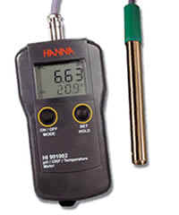 | Características Los equipos PH991001 y PH991002 vienen en una carcasa impermeable y compacta. Incluyen electrodo de pH que incorpora un sensor de Temperatura y un mini amplificador para que no afecten los ruidos e interferencias eléctricas. La pantalla tiene un indicador de estabilidad y símbolos gráficos para guiarlo en todas las operaciones. El botón HOLD le permite congelar los datos en pantalla para de esta forma registrar la con mayor comodidad. La vida de la batería garantiza mediciones durante más de 1500 horas | ![]() |