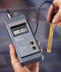 Phmetro y Termómetro portátil digital, resistenten al agua IP67. Calibración automática en 1 ó 2 puntos. Electodo reemplazable. Rango pH: -2,0 a 16,0 pH; Tª: -5ºC a +60ºC. Resolución: 0,01 pH/ 0,1ºC. Precisión: +- 0,05 pH. |