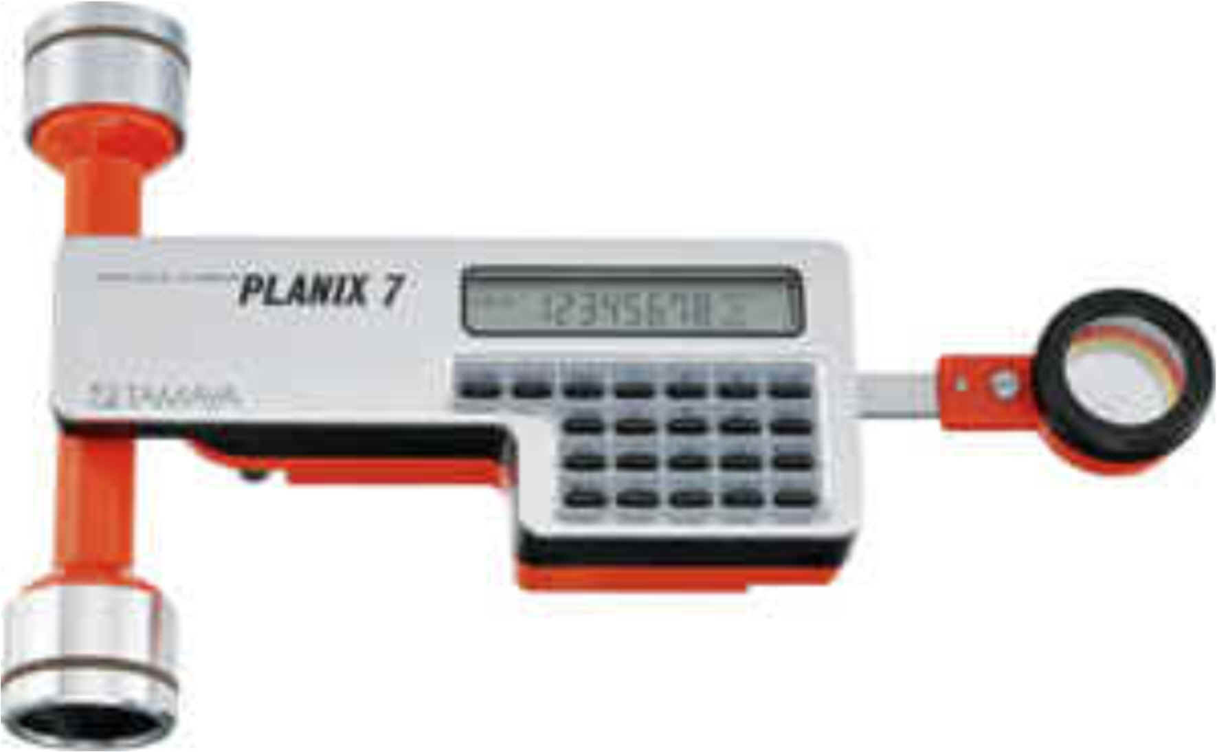 | El Planix 7 es una versión mejorada del Planímetro de rodillo PL002 (Planix 6) Los Planímetros electrónicos son una excelente herramienta para utilizar cuando se miden las áreas irregulares en forma de planos o dibujos. |