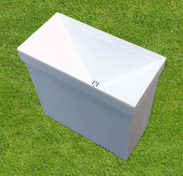 Rain-O-Matic es un innovador producto con un diseño sumamente funcional. Este colector de lluvia ha sido concebido para ser utilizado en el exterior y conectarlo a un contador digital de pulsos (colector de datos) Por cada mm de precipitación recogida en el colector se activa un mecanismo automático de vaciado. Este proceso genera un impulso que es registrado por el contador LCD. Registrando el número de impulsos (=número de mm de lluvia), el contador LCD almacena la precipitación acumulada, que puede ser leída en cualquier momento en el display LCD. Rain-O-Matic es resistente a las heladas, extraordinariamente fiable en su funcionamiento y tiene una exactitud que no difiere más de un 2% en un período de dos años. Rain-O-Matic ha sido sometido a 2 años de pruebas en el Laboratorio Danés de Ensayos Agrícolas. Además, después de los resultados obtenidos, el Organo Estatal de Ensayos e Implementos lo ha situado entre uno de los pluviómetros más exactos del mundo. - Contador digital de pulsos (colector de datos) no incluido