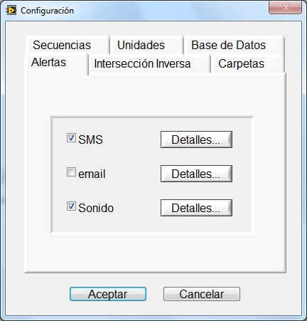 El programa monitoriza continuamente todos los controles definidos previamente, de forma que en caso de superarse los valores indicados se muestra claramente en pantalla un aviso, y se genera una alarma, que queda registrada. También se muestran las advertencias correspondientes en los casos de fallo de comunicaciones o de lectura de los aparatos. Las alarmas están clasificadas en niveles, según su gravedad. Se contemplan además otros medios para la notificación, tales como envío de SMS, correo electrónico, sirena luminosa y/o acústica, etc.