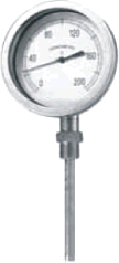 Termómetro a distancia tipo de pared, Ø 100 o 150 mm indicar. Escala indicar según relación normalizadas. Capilar en acero inox. 6mm Ø, longitud a indicar Bulbo de inmersión a determinar, mínimo 150 mm |