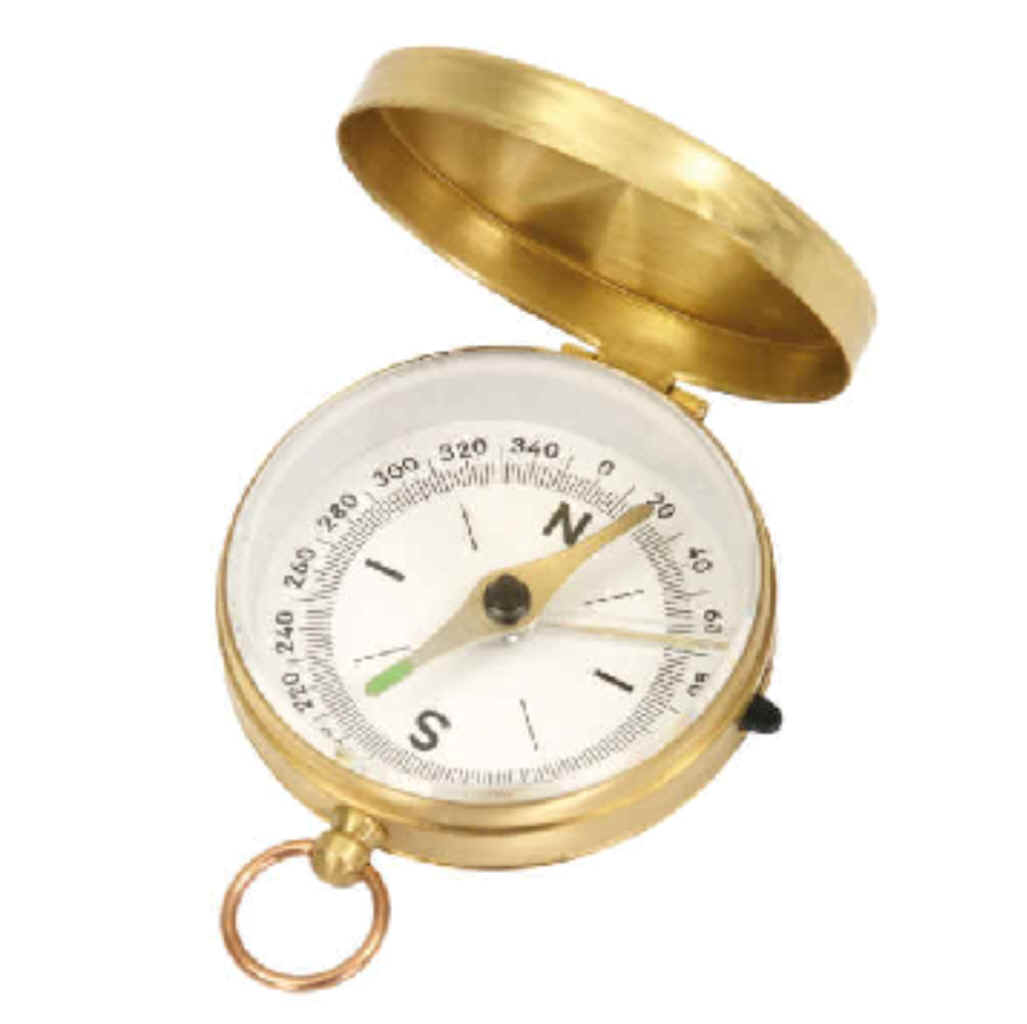 Brújula latón dorado pulido con tapa y bloqueo de aguja y anilla colgar