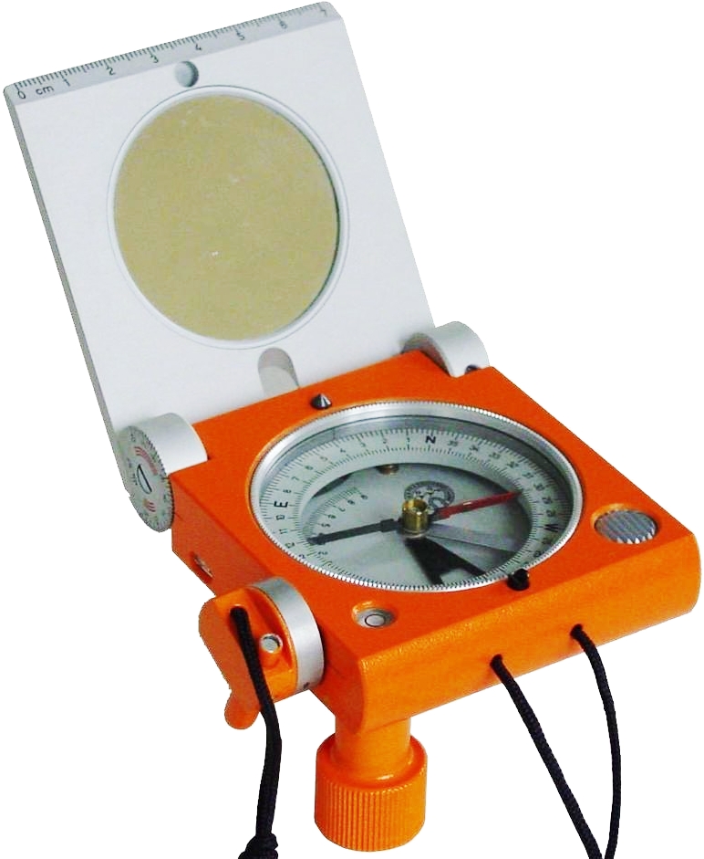 - Brújula geológica con espejo y visor lateral (según referencia elegida)
