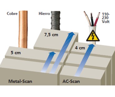 - Permite detectar directamente metales: hierros de construcción, tubos