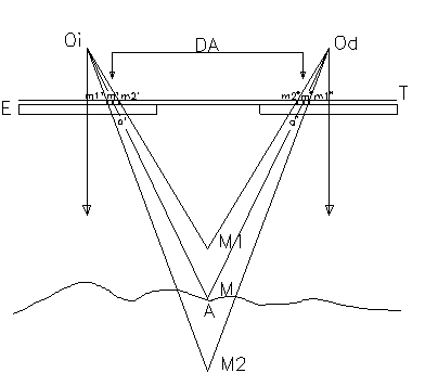 Si marcamos un pequeño punto de tinta en una fotografía aérea en un determinado lugar y otro en la otra fotografía del par estereoscópico en la misma localización que el anterior (homólogo), al observar el par bajo el estereoscopio, veremos los dos puntos fusionados y apoyados en el terreno. En caso de que los dos puntos los marquemos en posiciones relativas idénticas, referidas por ejemplo a la copa de un árbol, al observar el par veremos los puntos fusionados en uno a la altura de la copa del árbol, dado que ambos: el punto y la copa, tienen la misma paralaje absoluta.