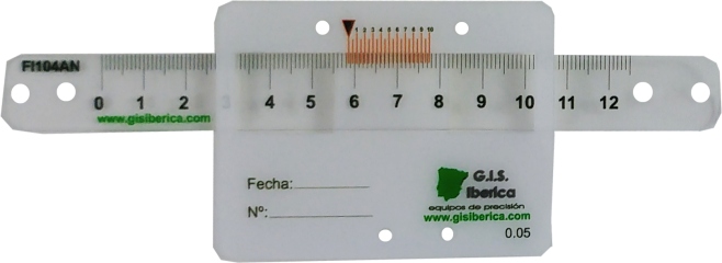 Fisurómetro angular (medidor milimétrico) para fisuras o grietas. |