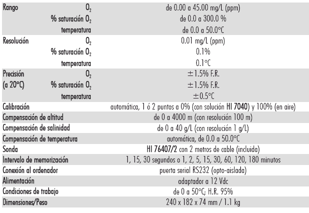 Se suministra completo con sonda oxígeno disuelto con 2 metros de cable, 2 membranas de repuesto,