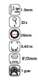 - Mira óptica para una alineación rápida con un pentagrama de nivelación.