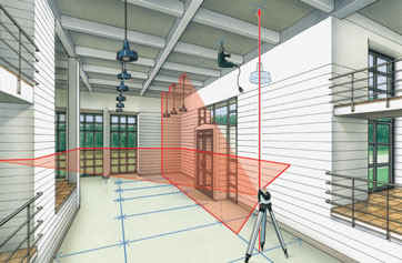 – Las 2 líneas láser muy visibles son ideales para alinear baldosas, montantes, ventanas, puertas, etc. – Láser adicional de plomada arriba y abajo. – Automatic Level: alineación automática mediante un sistema de péndulo con amortiguación magnética. – RX-Ready: el modo de receptor manual integrado permite reconocer las líneas láser con el receptor láser opcional hasta una distancia de 30 m. Resulta ideal para interiores y exteriores. – Líneas láser de conexión individual – Modo de inclinación adicional para nivelar superficies inclinadas – Nivelación Out-Off: el aparato indica que se encuentra fuera del rango de nivelación mediante señales ópticas. – Bloqueo de transporte: el bloqueo del péndulo protege el dispositivo durante el transporte. – Trípode/soporte de pared multifuncional: regulable en altura con roscas de trípode de 1/4“ o 5/8“; Espigas especiales e images para diferentes suelos y materiales. – Fácil manejo