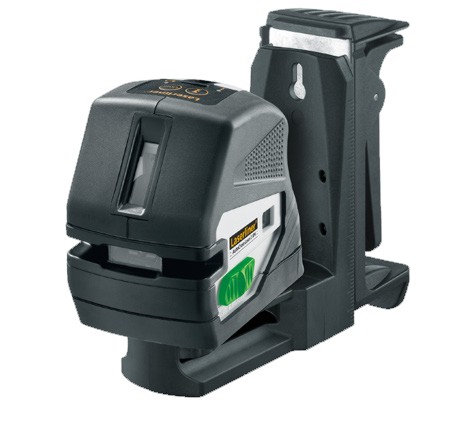 Láser de líneas cruzadas y de 5 puntos con modo de receptor manual y soporte de pared magnético.