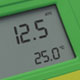 - La Temperatura (en ºC o ºF) se muestra simultáneamente con la medición (en 3 de los rangos) en la pantalla LCD de 2 niveles, así como iconos y otros códigos y mensajes útiles.