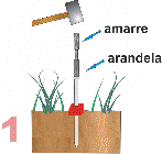 Para la colocación de un Hito con anclaje se necesita: 1 anclaje, 1 maza, 1 arandela y 1 amarre.
