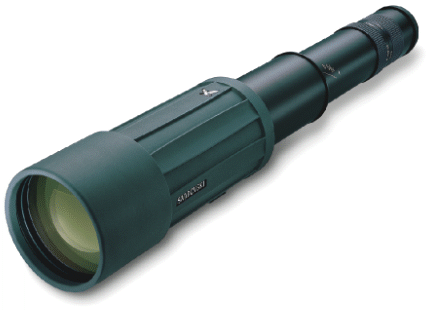 | Apropiado para realizar frecuentes cambios de posición, gracias a sus reducidas dimensiones de transporte. Plegado mide menos de 25 cm. (con el ocular quitado), por lo que cabe perfectamente en la bolsa o macuto. Mirando apoyado, permite efectuar cómodos barridos del campo de visión y hace prescindible el uso del trípode. Su mecanismo extensible permite una extracción precisa, rápida y suave. El sistema de filtrado de aire evita la introducción de polvo y suciedad, manteniendo el interior de los prismas y lentes claro y limpio. Su revestimiento de goma amortigua los ruidos y los choques y hace que el instrumento sea agradable de asir, incluso a bajas temperaturas. Dispone de parasol extensible. Oculares: Mediante un rápido, seguro y silencioso sistema de enganche por bayoneta, se le puede acoplar un ocular fijo de 20x, de 30x, de 45x o variable de 20-60x, así como el adaptador de cámara de 800 mm. | |